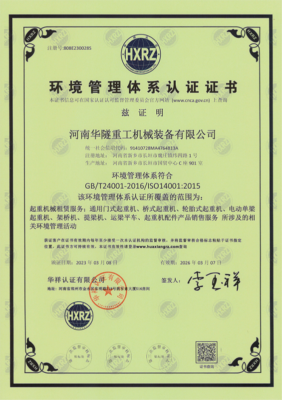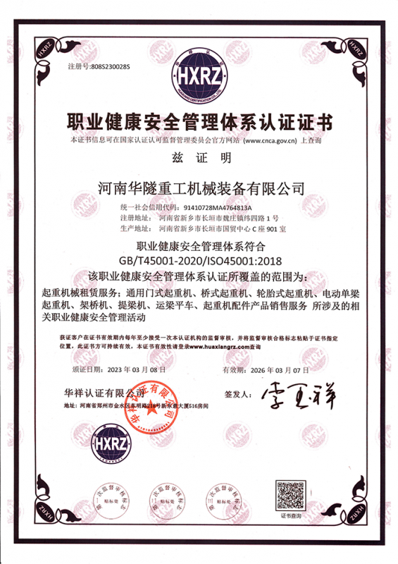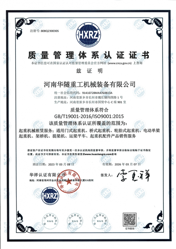 河南華隧重工機械裝備有限公司主要從事通用門式起重機、橋式起重機、電動單梁起重機,輪胎式起重機、架橋機、提梁機、遠(yuǎn)梁平車、鋼絲繩電動萌蘆、卷揚機、起重配件制造、銷售:起重機械租賃、安裝和維修,起重設(shè)備園收,機械設(shè)備維修,鋼結(jié)構(gòu)工程承包,橋梁工程及技術(shù)咨淘服務(wù),銷售五金制品、機電設(shè)備:建設(shè)工程監(jiān)理,建設(shè)工程設(shè)計,各類工程建設(shè)活動,建筑勞務(wù)分包,建筑物折除作業(yè),施工作業(yè),工程管理服務(wù),土石方工程施工,裝如發(fā)運。  公司已通過IS0國際質(zhì)量、環(huán)境、健康與安全三合一標(biāo)準(zhǔn)認(rèn)證,特種設(shè)備制造許可證和特種設(shè)備安裝改造維修許可證。擁有完熟的質(zhì)量管理體系。嚴(yán)格的管理制度,強大的生產(chǎn)能力和先進的檢測手段,在保證產(chǎn)品質(zhì)量的同時,也具備了極強的市場競爭力。  公司堅持科技創(chuàng)新為理念,產(chǎn)品質(zhì)量為核心,注重信譽,建立了減信可靠、快捷、思速。便利周到的售后服務(wù)網(wǎng)絡(luò)。  我們擁有的技術(shù)專家和技術(shù)服務(wù)隊伍為客戶提供充善的售前技術(shù)支持和全天候的售后服務(wù)體系,讓您無后顧之憂,享受一站式的超值服務(wù)。  “華隧重工,伴您成功“是華隧重工永遠(yuǎn)的宗指,真被的希望與各界朋友攜手并進。共創(chuàng)輝準(zhǔn)!